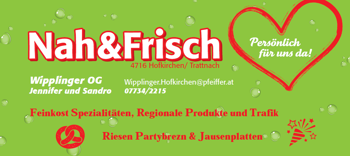 Unternehmensdaten: Wipplinger OG Bezirk: Grieskirchen Ort: Hofkirchen an der Trattnach Postleitzahl: 4716 Straße: Hauptstraße Hausnummer: 14 Schnuppern für die Zukunft Einzelhandel - Schwerpunkt Lebensmittelhandel